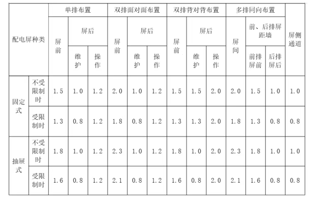 4  控制屏、控制柜、落地式动力配电箱前后的通道最小宽度可按本表确定;