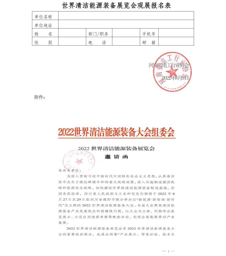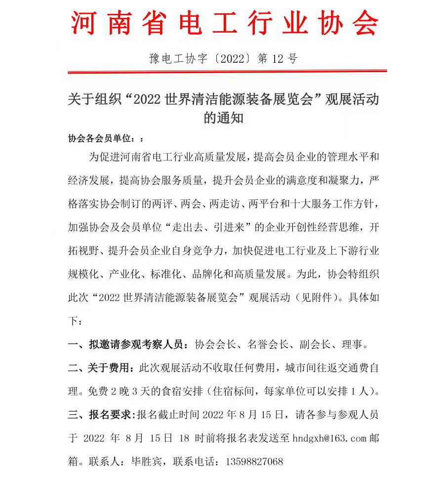 关于组织“2022世界清洁能源装备展览会”观展活动的通知