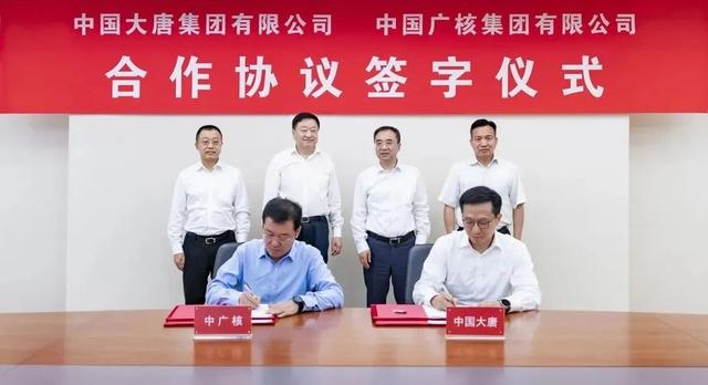 中国大唐党组成员、副总经理彭勇,中广核集团党委常委、副总经理庞松涛参加会见并代表双方签署合作协议。