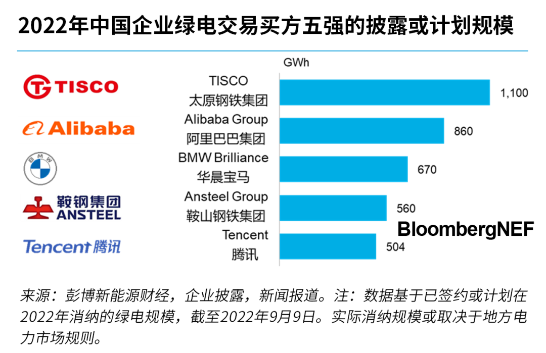彭博新能源财经根据专有数据与公开信息发布了第三期《中国企业绿电交易排行榜》。本期排行榜表明企业购电量不断上升,且有更多元的行业购买绿电。本年度绿电买方五强计划在2022年消纳的绿电合计是2021年五强在2021年消纳量合计的六倍。同时,钢企成为领先的绿电买家。