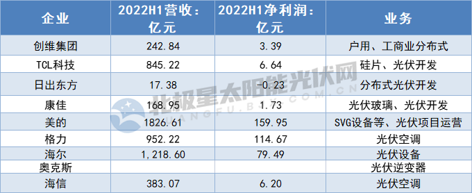 目前已有美的、格力、海尔、TCL、创维、日出东方、康佳、奥克斯、海信九大家电企业跨界光伏。