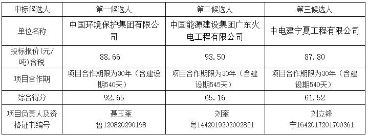 广东省惠来县生活垃圾焚烧发电项目候选人公示