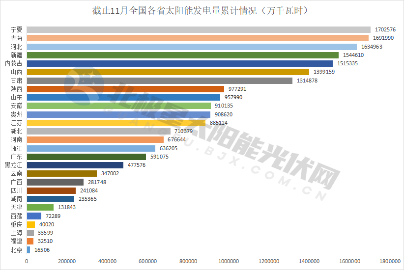 根据国家统计局公布2022年11月全国太阳能发电量数据,北极星太阳能光伏网统计了全国太阳能发电量排名前十情况。