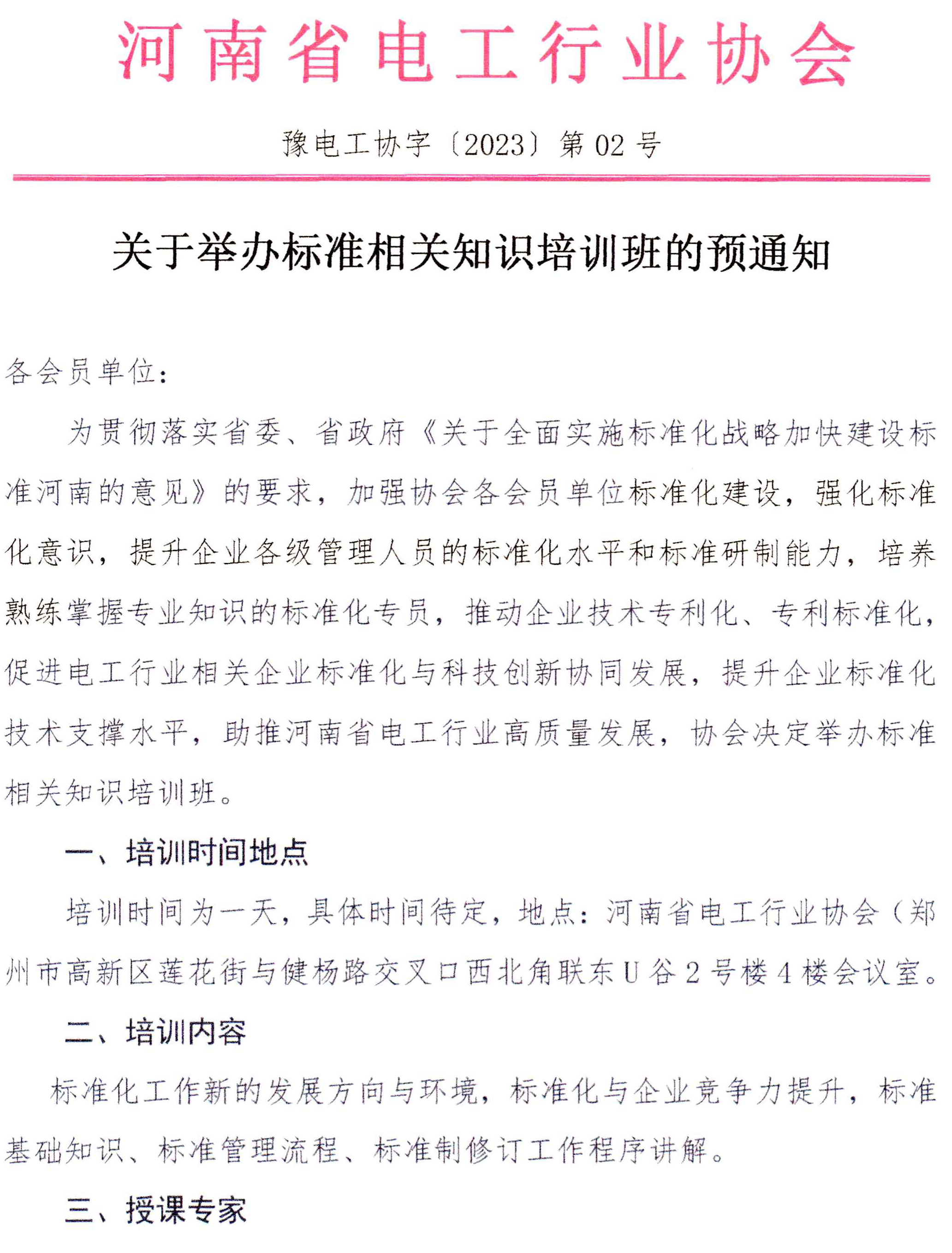 关于举办标准相关知识培训班的预通知