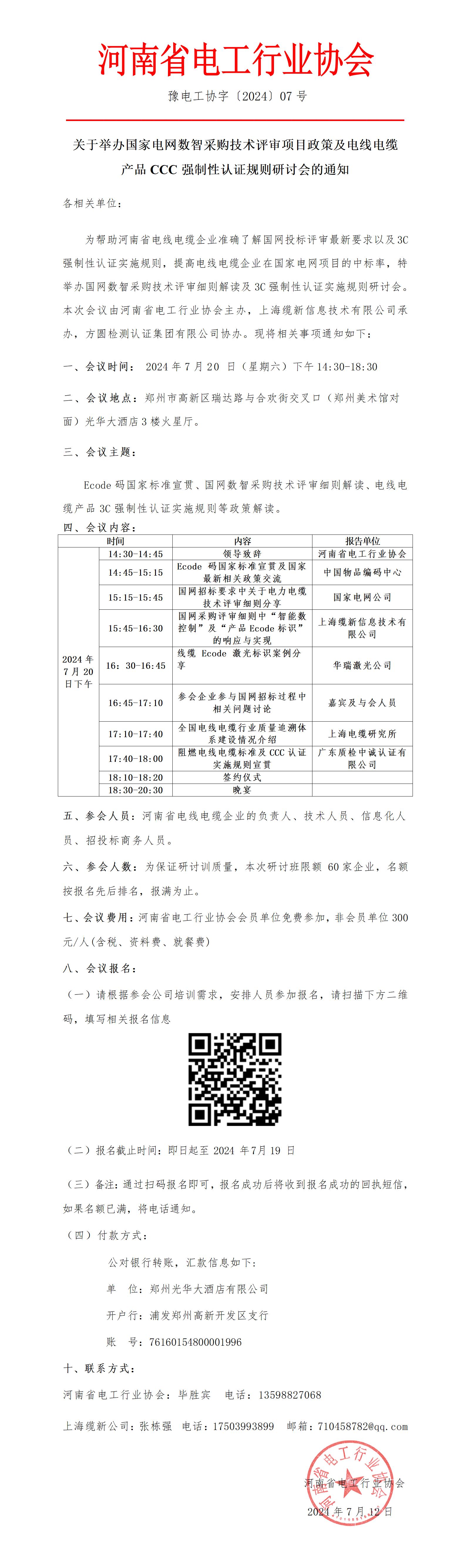 关于举办国家电网数智采购技术评审项目政策及电线电缆产品CCC强制性认证规则研讨会的通知