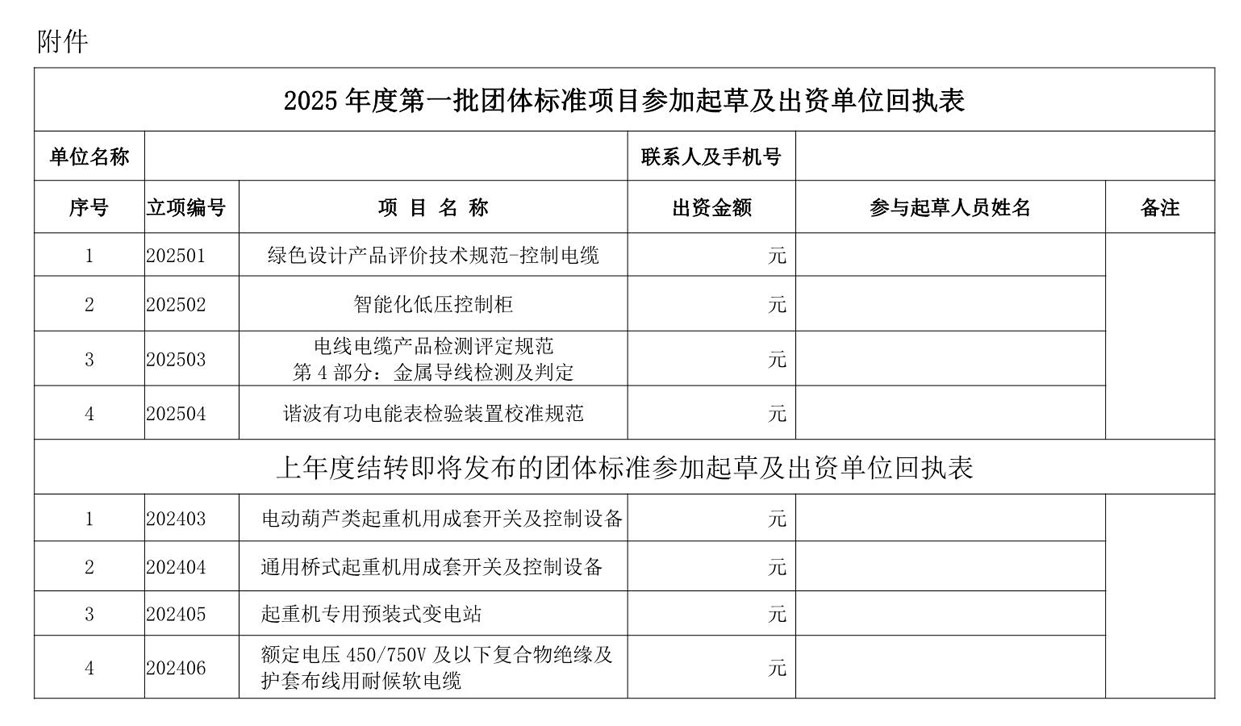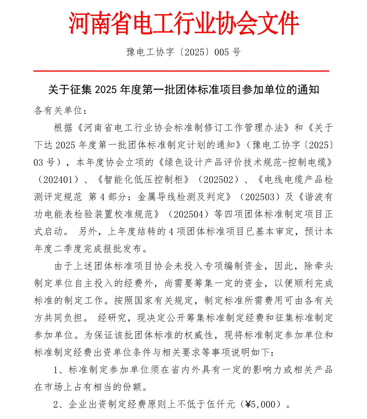 关于征集2025年度第一批团体标准项目参加单位的通知