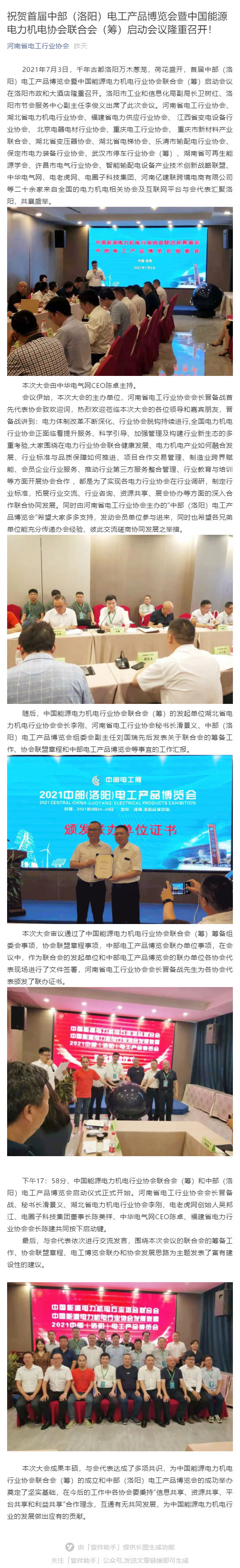 祝贺博览会暨电力机电协会联合会启动会议隆重召开!