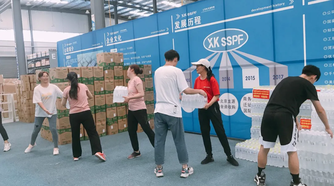 星凯电气有限公司总裁张素平得知这一情况,为了让物资更好更方便的运输,立马组织人员专门腾出一车间用于救援物资的存放,安排员工帮忙装卸物资并为广大志愿者们提供免费用餐。