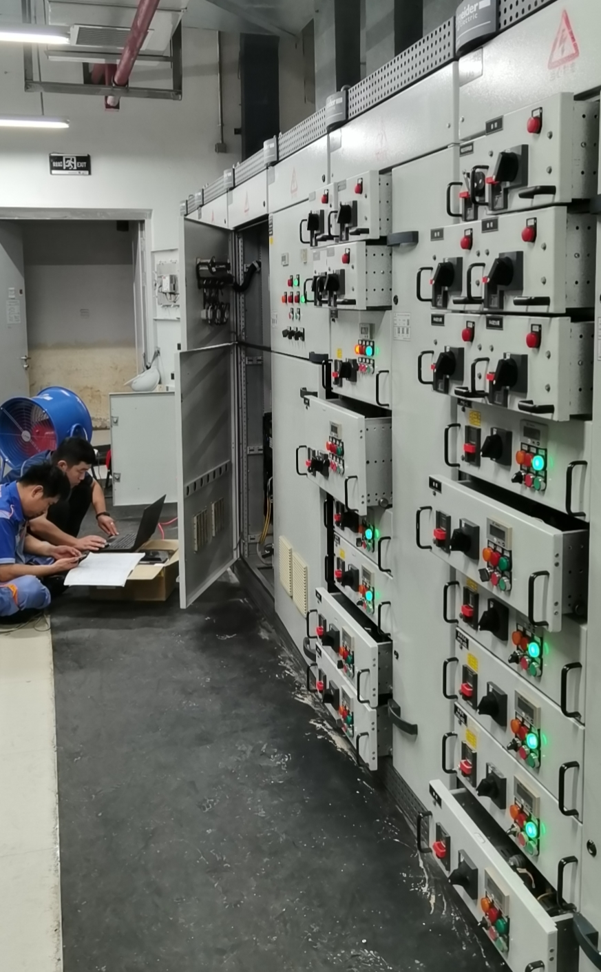 2021年7月29日索凌电气工程师正在调试抢修好的地铁1号线环控柜,预计郑州地铁1号线很快就要恢复运行。