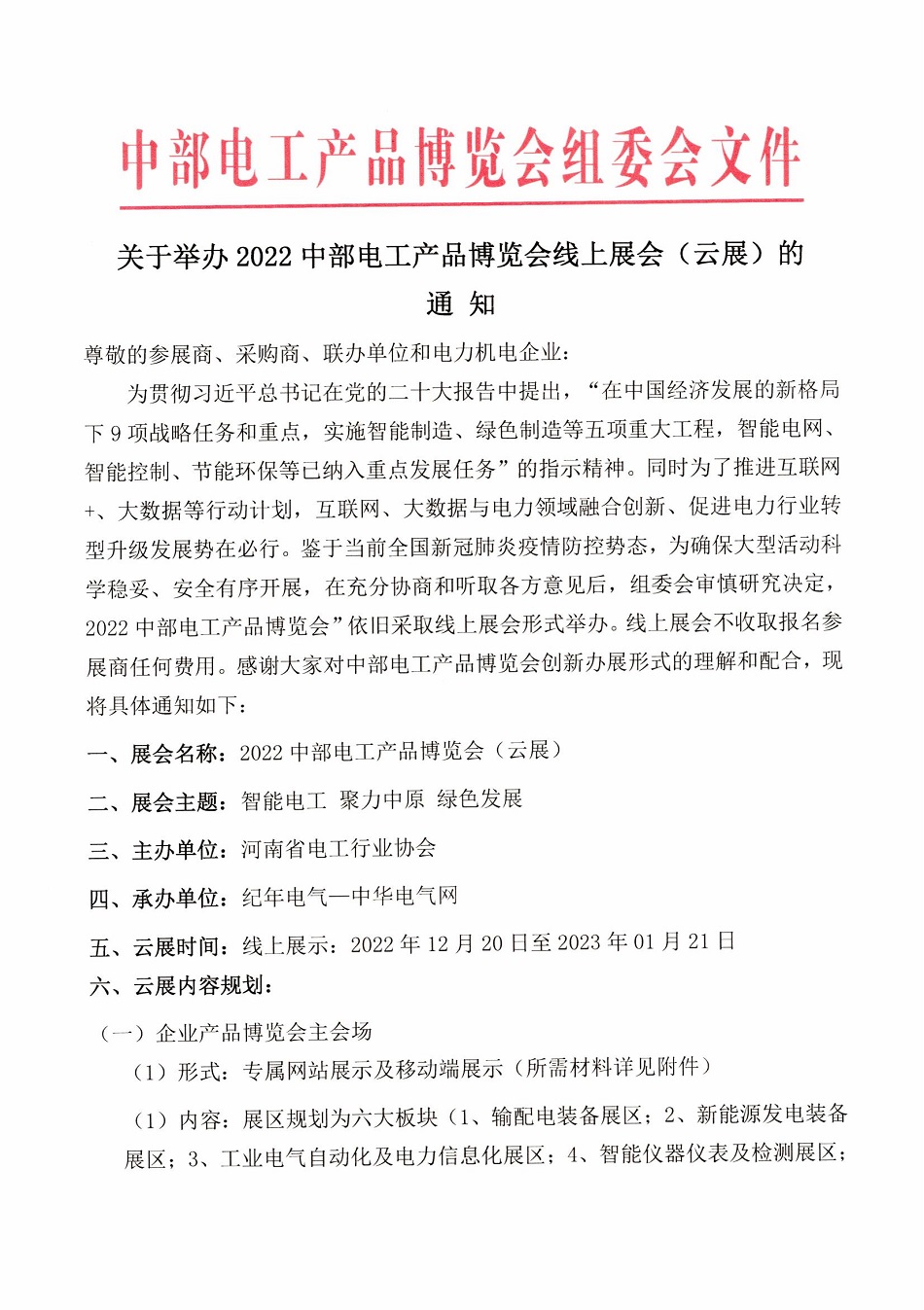关于举办2022中部电工产品博览会线上展会(云展)的通知